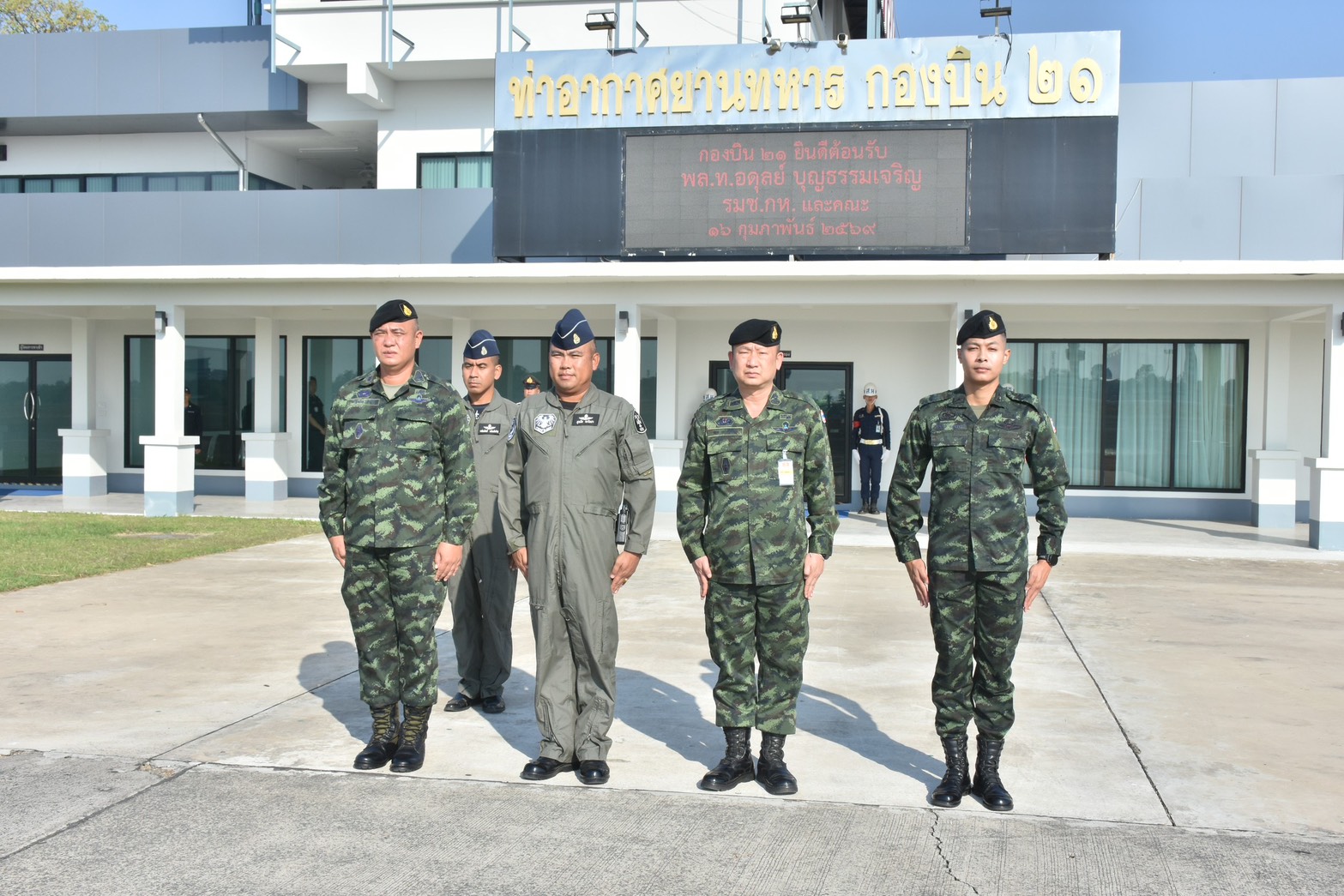 พลโท อดุลย์ บุณธรรมเจริญ รัฐมนตรีช่วยว่าการกระทรวงกลาโหม และคณะ เดินทางมาเยี่ยมให้กำลังใจทหารที่ได้รับบาดเจ็บจากการปฏิบัติหน้าที่ ในพื้นที่ชายแดนไทย - กัมพูชา ณ โรงพยาบาลค่ายสรรพสิทธิประสงค์ อำเภอวารินชำราบ จังหวัดอุบลราชธานี ในการนี้ นาวาอากาศเอก ภูวนัย มะโนปา รองผู้บังคับการกองบิน ๒๑ ให้การต้อนรับ ณ ท่าอากาศยานทหาร กองบิน ๒๑ เมื่อวันที่ ๑๖ กุมภาพันธ์ ๒๕๖๙