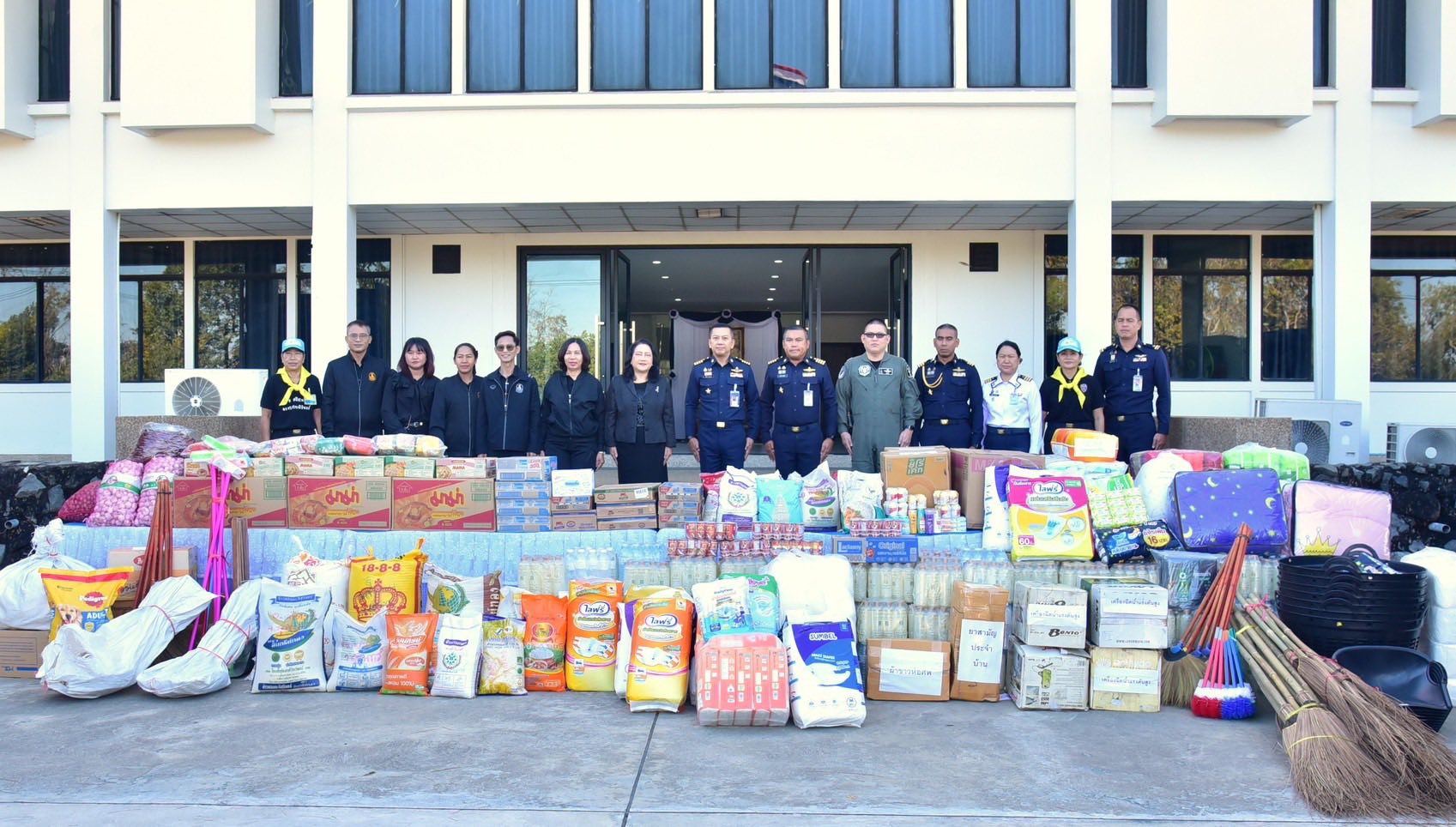 นาวาอากาศเอก ภักตร์ บุณยะเวศ ผู้บังคับการกองบิน ๒๑ พร้อมด้วย นางพนิดา จันทวัฒน์ ผู้อำนวยการสำนักงานประชาสัมพันธ์ที่ 2 อุบลราชธานี ร่วมพิธีปล่อยขบวนรถบรรทุกสิ่งของบริจาค เพื่อส่งต่อความช่วยเหลือให้แก่ผู้ประสบอุทกภัยในพื้นที่ภาคใต้ โดยสิ่งของที่จัดส่งประกอบด้วย ข้าวสาร อาหารแห้ง น้ำดื่ม ยารักษาโรค อุปกรณ์ทำความสะอาด เครื่องฉีดน้ำแรงดันสูง และสิ่งของเครื่องใช้จำเป็น ซึ่งได้รับมอบมาจาก ประชาชนชาวจังหวัดมุกดาหาร จังหวัดสุรินทร์ จังหวัดศรีสะเกษ และจังหวัดอุบลราชธานี เพื่อบรรเทาความเดือดร้อนของพี่น้องประสบอุทกภัยในพื้นที่ภาคใต้ ณ หน้ากองบังคับการ กองบิน ๒๑ เมื่อวันที่ ๓ ธันวาคม ๒๕๖๘