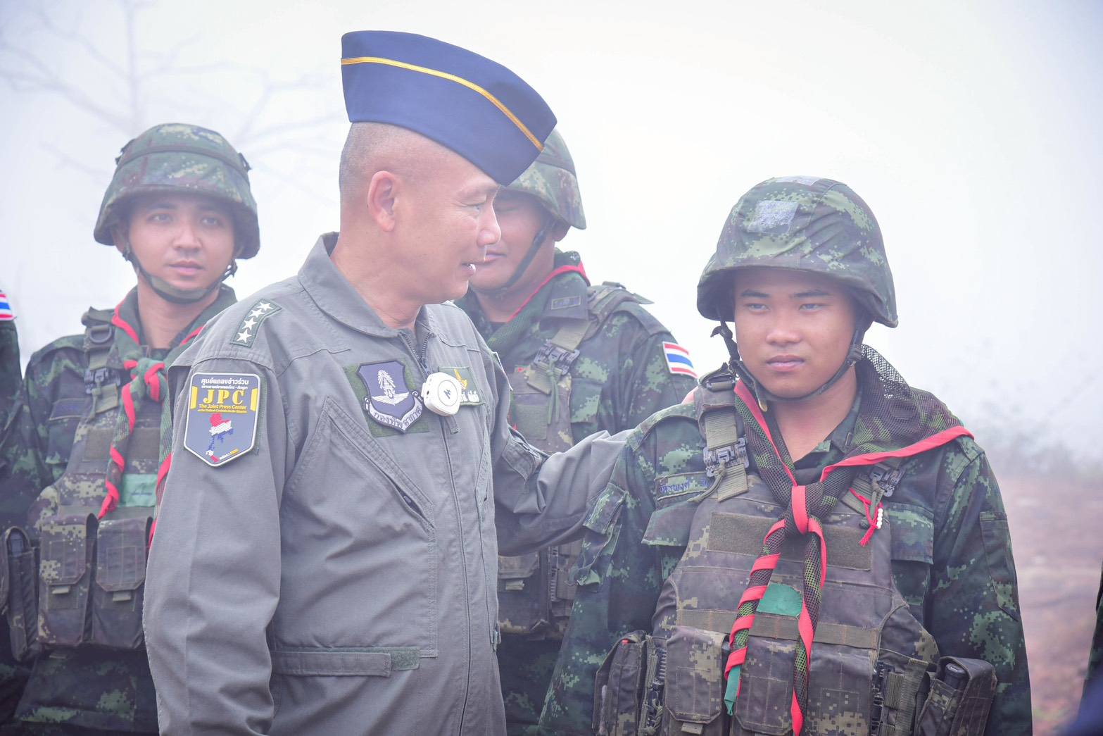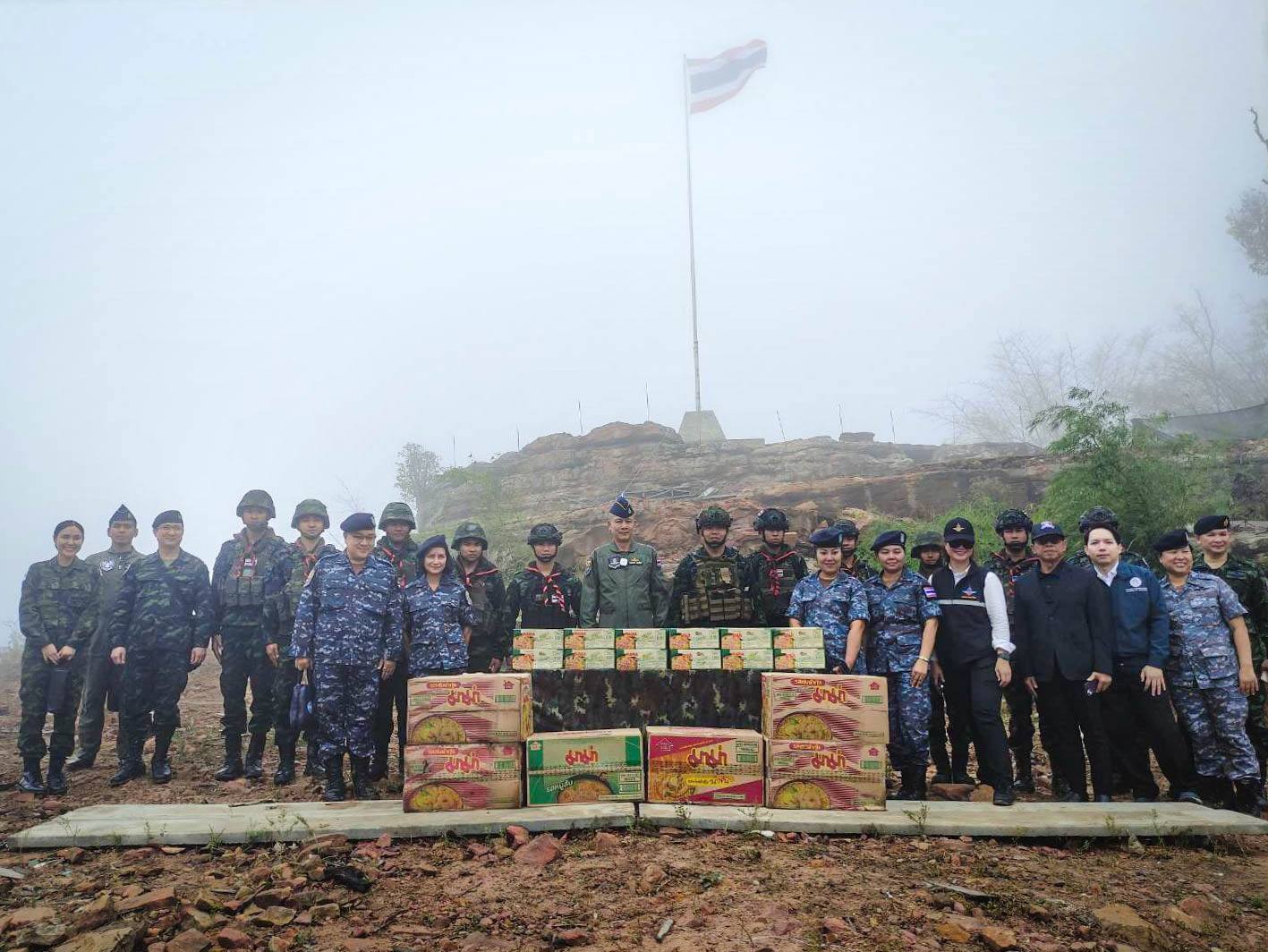 พลอากาศเอก ประภาส สอนใจดี ผู้ช่วยผู้บัญชาการทหารอากาศ และผู้อำนวยการศูนย์ประสานข้อมูลข่าวสารร่วมไทย–กัมพูชา พร้อมคณะ เดินทางมาตรวจเยี่ยมการปฏิบัติงานของกำลังพลในพื้นที่จังหวัดศรีสะเกษ เพื่อรับทราบข้อเท็จจริงจากพื้นที่โดยตรง ติดตามสถานการณ์ด้านความมั่นคงและข้อมูลข่าวสารอย่างใกล้ชิดพร้อมมอบสิ่งของให้แก่กำลังพล เพื่อสร้างขวัญและกำลังใจแก่เจ้าหน้าที่ผู้ปฏิบัติงานในพื้นที่ ณ บริเวณผามออีแดง และฐานอินทุมาน (ภูมะเขือ) ตำบลเมืองเขารัตน์ อำเภอกันทรลักษ์ จังหวัดศรีสะเกษ อันเป็นพื้นที่สำคัญด้านความมั่นคงบริเวณชายแดนไทย–กัมพูชาในการนี้ นาวาอากาศเอก บุรานนท์ นนคลัง รองผู้บังคับการกองบิน ๒๑ ให้การต้อนรับ ณ ท่าอากาศยานทหาร กองบิน ๒๑ จังหวัดอุบลราชธานี เมื่อวันที่ ๒๗ กุมภาพันธ์ ๒๕๖๙
