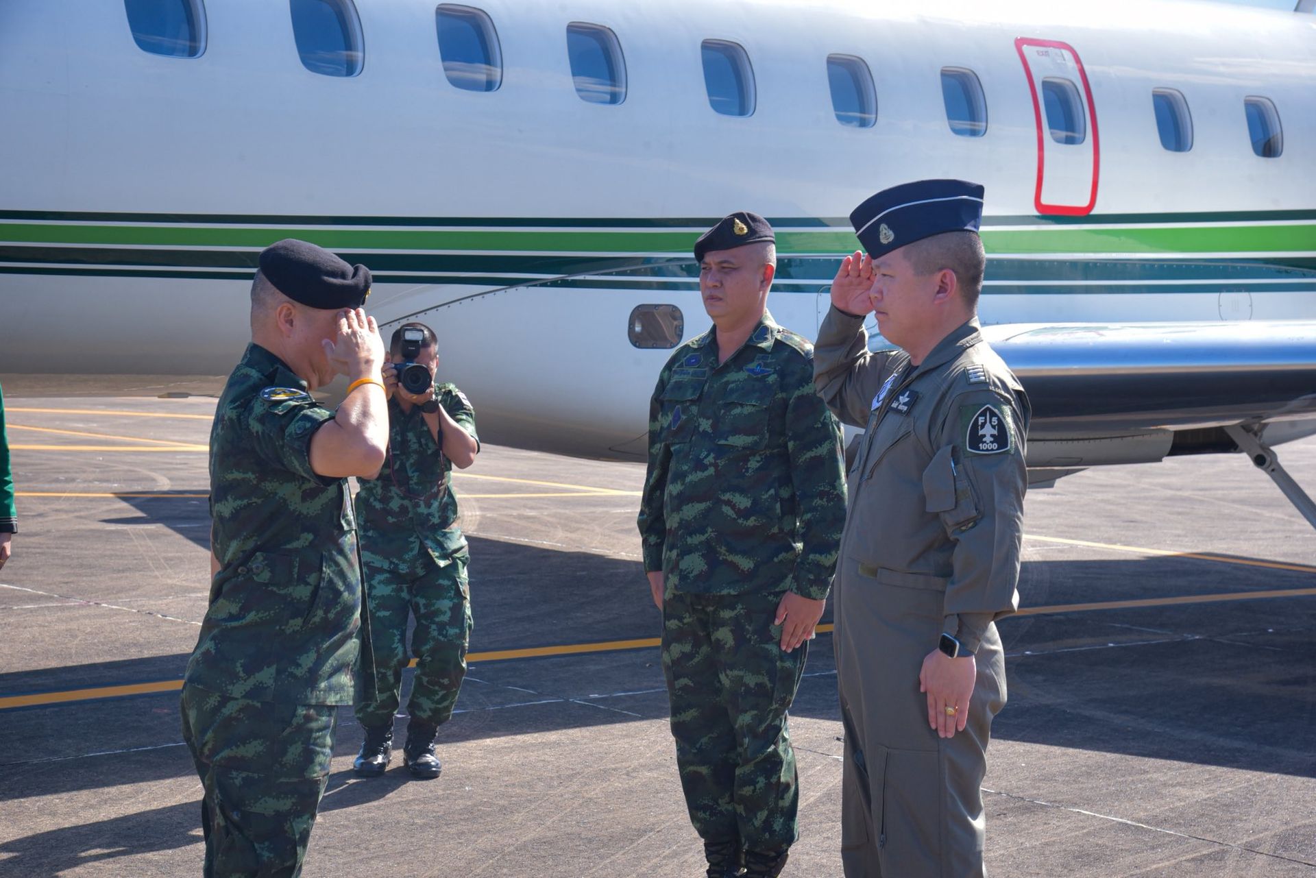 พลเอก ชัยพฤกษ์ ด้วงประพัฒน์เสนาธิการทหารบก เดินทางมาปฏิบัติราชการติดตามสถานการณ์ชายแดน ไทย - กัมพูชา ในการนี้ นาวาอากาศเอก ชัยภัสร์ เตียตระกูล เสนาธิการ กองบิน ๒๑ ให้การต้อนรับ ณ ลานจอดอากาศยาน กองบิน ๒๑ จังหวัดอุบลราชธานี เมื่อวันพฤหัสบดีที่ ๒๕ ธันวาคม ๒๕๖๘