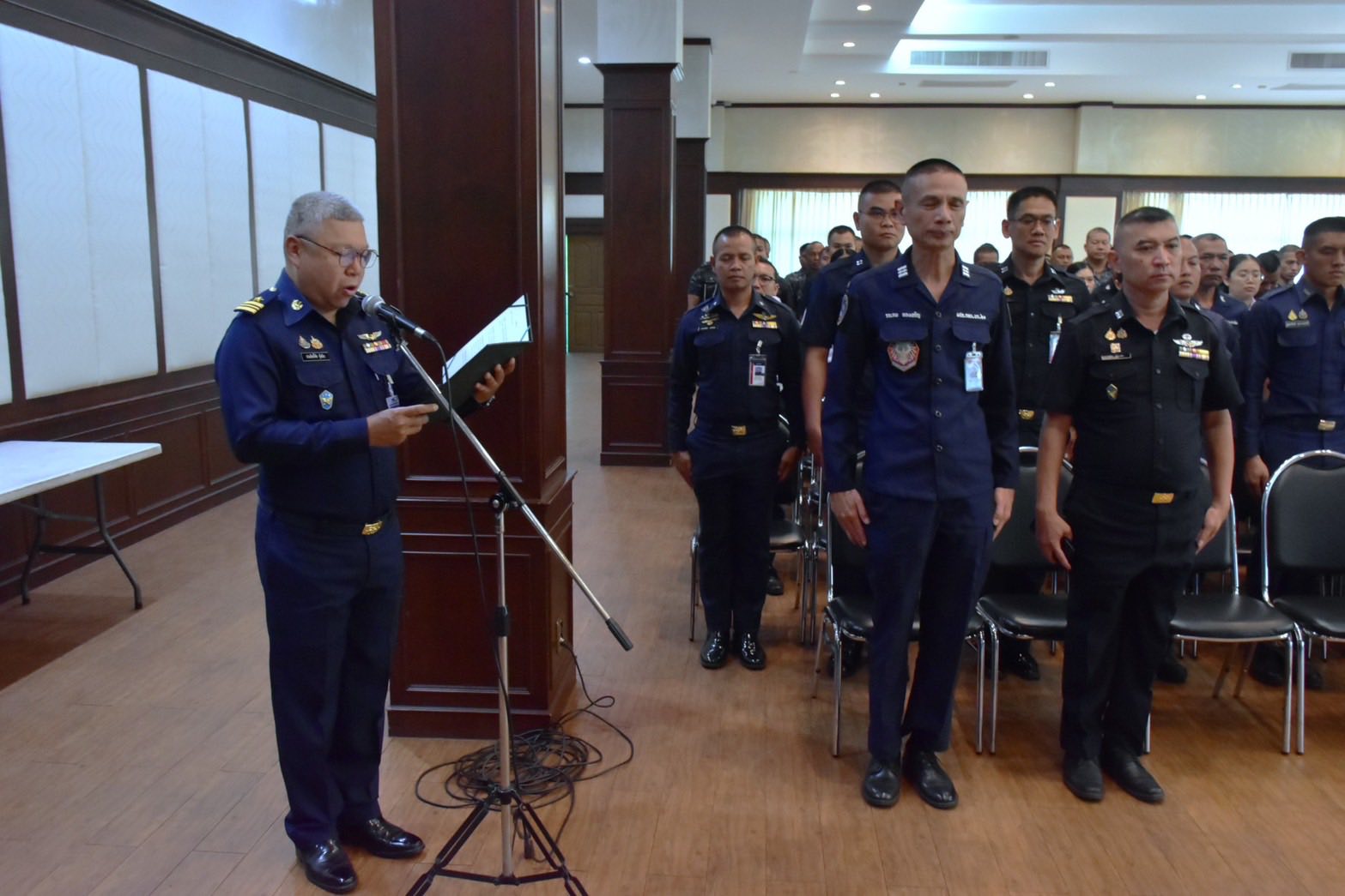 นาวาอากาศเอก บุรานนท์ นนคลัง รองผู้บังคับการกองบิน ๒๑ เป็นประธานในพิธีเปิดการอบรมโครงการเดินทางปลอดภัยในเทศกาลสงกรานต์ ประจำปี ๒๕๖๙ ให้แก่ข้าราชการ ลูกจ้าง พนักงานราชการ และทหารกองประจำการ กองบิน ๒๑ โดยมี พันตำรวจโท ธีรศักดิ์ ไชยพันธ์ สารวัตรจราจร สถานีตำรวจภูธรเมืองอุบลราชธานี เป็นวิทยากรบรรยายให้ความรู้เกี่ยวกับการปฏิบัติตามกฎจราจร ความหมายของสัญลักษณ์และป้ายจราจร รวมถึงการขับขี่ยานพาหนะอย่างปลอดภัย เพื่อเสริมสร้างความรู้ ความเข้าใจ และปลูกจิตสำนึกด้านความปลอดภัยในการใช้รถใช้ถนนให้แก่กำลังพลกองบิน ๒๑ ในช่วงเทศกาลสงกรานต์ ณ อาคารศิวิไล กองบิน ๒๑ เมื่อวันที่ ๘ เมษายน ๒๕๖๙