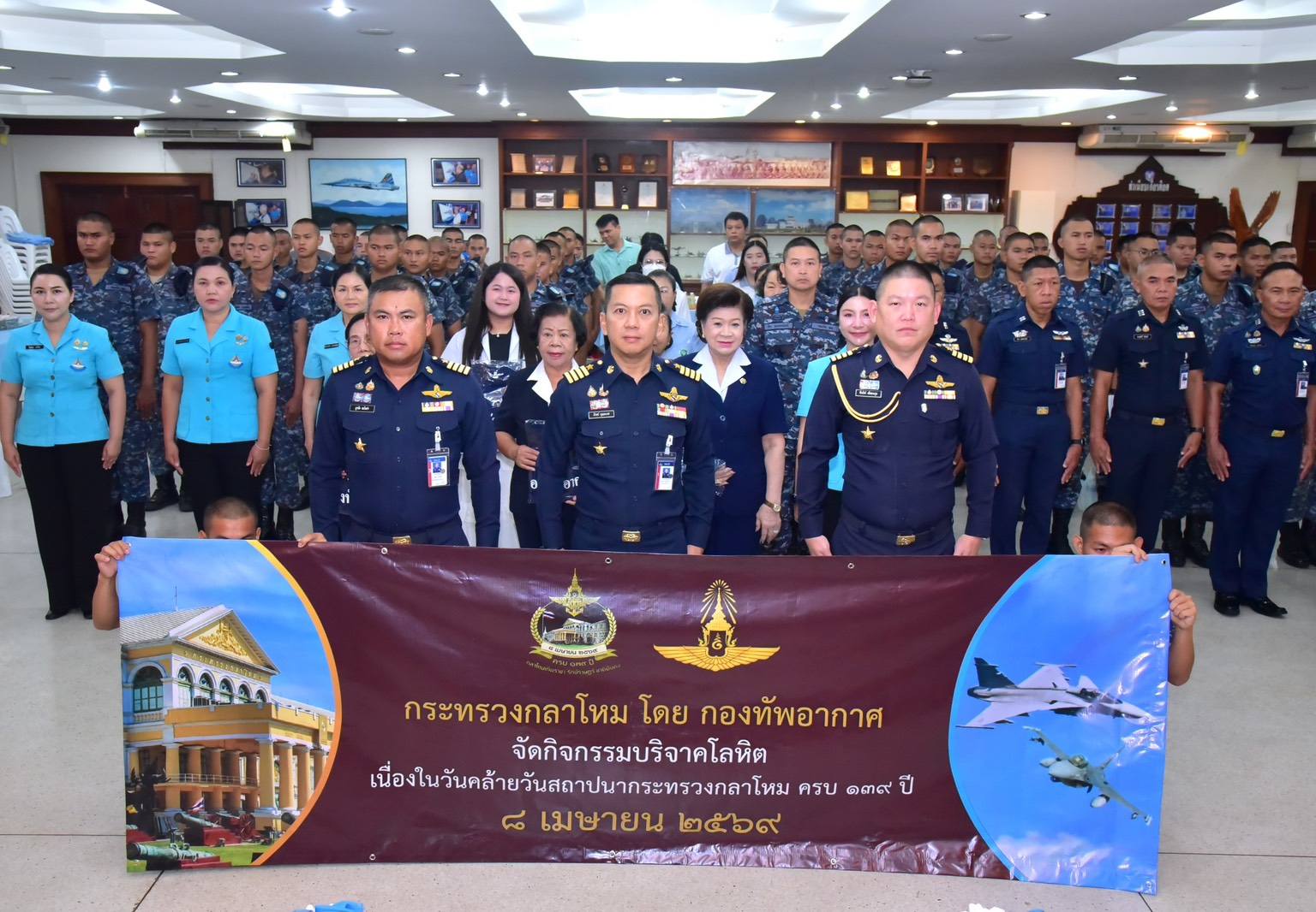 นาวาอากาศเอก ภักตร์ บุณยะเวศ ผู้บังคับการกองบิน ๒๑ เป็นประธานเปิดกิจกรรมบริจาคโลหิต พร้อมนำข้าราชการ ลูกจ้าง พนักงานราชการ ทหารกองประจำการ และสมาชิกชมรมคู่สมรสทหารอากาศ กองบิน ๒๑ ร่วมบริจาคโลหิตเพื่อถวายเป็นพระราชกุศลแด่ สมเด็จพระกนิษฐาธิราชเจ้า กรมสมเด็จพระเทพรัตนราชสุดาฯ สยามบรมราชกุมารี เนื่องในวันคล้ายวันพระบรมราชสมภพ ๒ เมษายน เนื่องในวันคล้ายวันสถาปนากระทรวงกลาโหม ครบ ๑๓๙ ปี วันที่ ๘ เมษายน และเนื่องในวันที่ระลึกกองทัพอากาศ ๒๗ มีนาคม โดยได้รับการสนับสนุนจากโรงพยาบาลสรรพสิทธิประสงค์ และสำนักงานเหล่ากาชาดจังหวัดอุบลราชธานี ทั้งนี้มีวัตถุประสงค์เพื่อจัดหาและสำรองโลหิตให้เพียงพอแก่ผู้ป่วยที่มีความต้องการใช้โลหิต ตลอดจนเป็นการส่งเสริมให้กำลังพลมีส่วนร่วมในการบำเพ็ญสาธารณประโยชน์และช่วยเหลือสังคม ทั้งนี้ยอดบริจาคโลหิตรวมทั้งสิ้นจำนวน ๑๒,๔๐๐ ซีซี ณ ห้องเวหาสุข กองบิน ๒๑ เมื่อวันที่ ๒๕ มีนาคม ๒๕๖๙