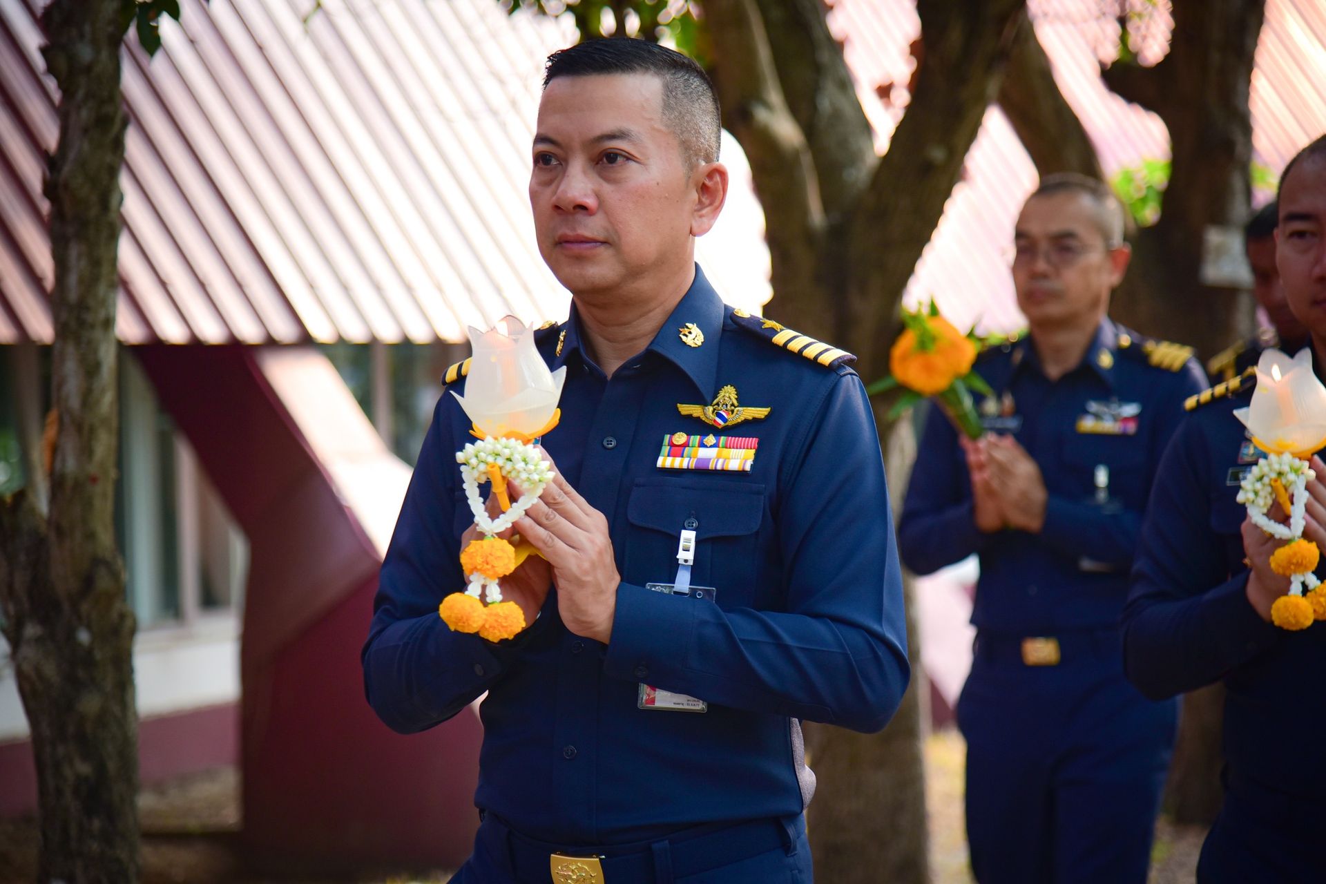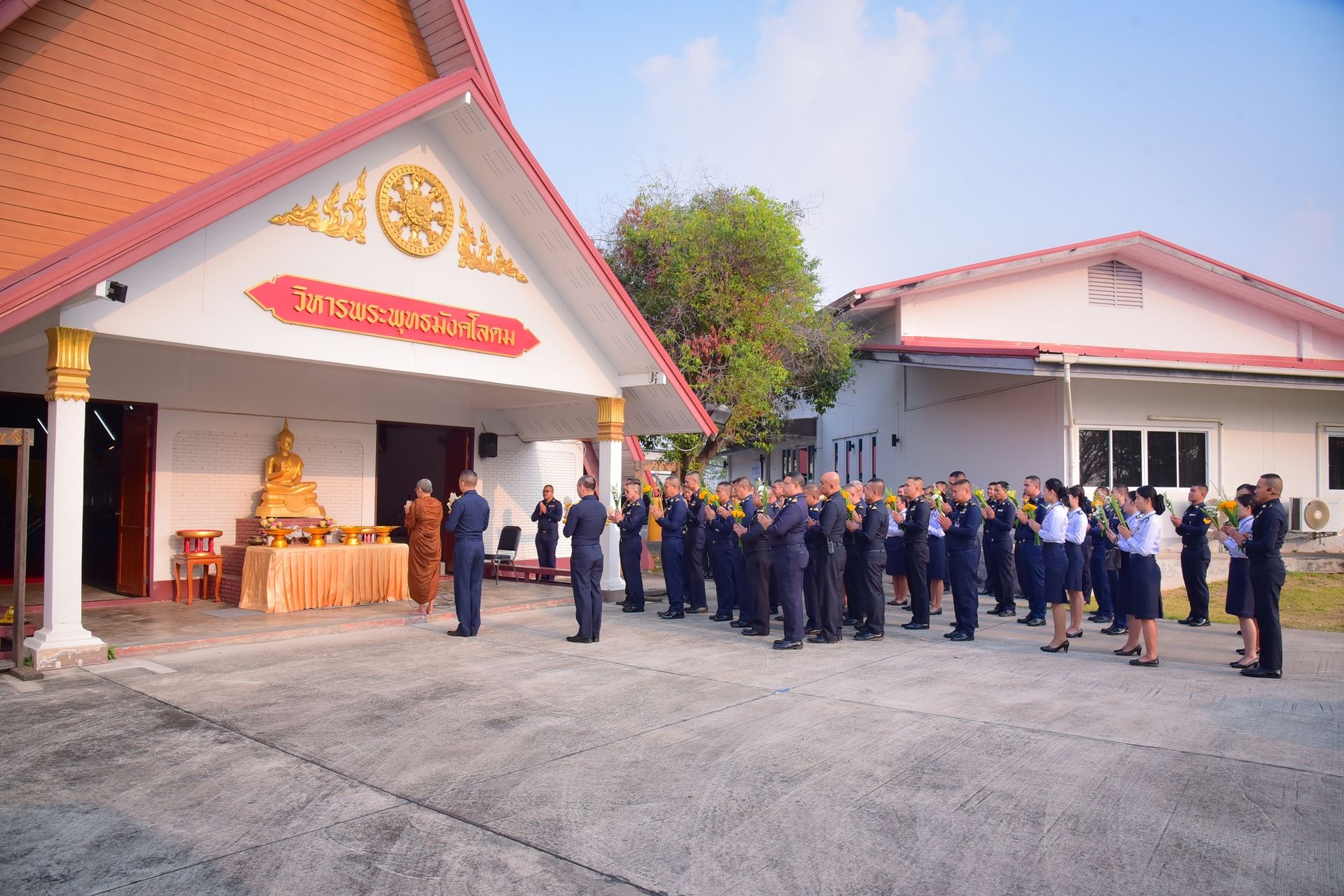 นาวาอากาศเอก ภักตร์ บุณยะเวศ ผู้บังคับการกองบิน ๒๑ พร้อมด้วย รองผู้บังคับการกองบิน ๒๑, ข้าราชการ, ลูกจ้าง, พนักงานงานราชการ และครอบครัว ร่วมเวียนเทียน เนื่องในวันมาฆบูชา ประจำปี ๒๕๖๙ เพื่อเป็นการถวายเป็นพุทธบูชา รำลึกถึงหลักธรรมคำสอนขององค์สมเด็จพระสัมมาสัมพุทธเจ้า สร้างเสริมคุณธรรมจริยธรรม และสืบสานประเพณีอันดีงาม ณ วิหารพระพุทธมังคโลดม กองบิน ๒๑ เมื่อวันที่ ๒๖ กุมภาพันธ์ ๒๕๖๙