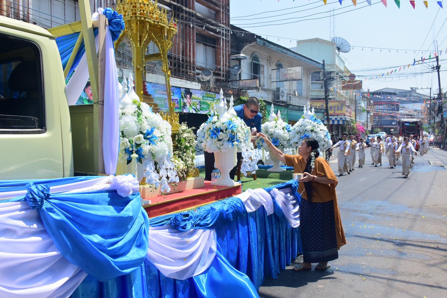 นาวาอากาศเอก ภักตร์ บุณยะเวศ ผู้บังคับการกองบิน ๒๑ เป็นประธานในพิธีอัญเชิญพระแก้วขาวเพชรน้ำค้าง ณ วัดสุปัฏนารามวรวิหาร พร้อมด้วย นาวาอากาศเอก ชัยภัสร์ เตียตระกูล เสนาธิการกองบิน ๒๑ เข้าร่วมขบวนแห่พระแก้ว ๕ องค์ บริเวณด้านหน้าวัดศรีอุบลรัตนาราม อำเภอเมือง จังหวัดอุบลราชธานี โดยเคลื่อนขบวนแห่รอบเมืองในเขตเทศบาลนครอุบลราชธานี เปิดโอกาสให้ประชาชนได้กราบไหว้และสรงน้ำ เพื่อความเป็นสิริมงคลแก่ชีวิต เนื่องในวันสงกรานต์ หรือวันขึ้นปีใหม่ไทย ประจำปี ๒๕๖๙