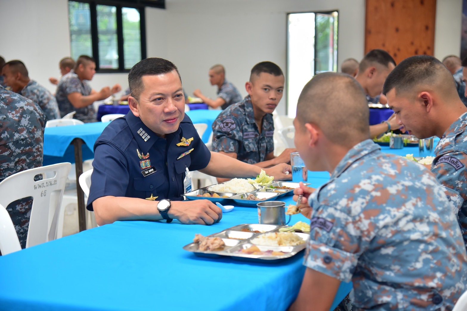 ผู้บังคับการกองบิน ๒๑ ตรวจเยี่ยมความเป็นอยู่และร่วมรับประทานอาหารกลางวันกับทหารกองประจำการ